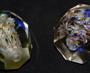 Dvě skleněná těžítka, perfektní stav, mistrovská sklářská práce. Vyrobeno ve sklárnách Janštejn v 1. čtvrtině 20. století. Výška 8,5 a 10 cm. Cena za oba kusy. Sběratelská lahůdka, vzácné.