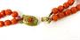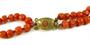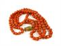 Korálový náhrdelník složený ze dvou šňůr středomořských korálů. Zapínání z obecného kovu zdobené korálem a rytím. Délka 46,5 cm, hmotnost 55,72 g, 30. léta 20. století. ---