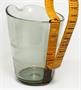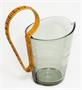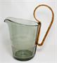 Větší skleněný džbán z topasového skla zušlechtěného jemným gravírovaným dekorem a krásně opleteným uchem s kovovou montáží. Stylové užitkové sklo z první poloviny minulého století ve tvarosloví uměleckořemeslného hnutí BAUHAUS. Svou formou, použitým odstínem a jednoduchostí tvaru navazuje na odkaz této školy. Dobrý stav, rozměr - v. 30 x 26 x 17cm
