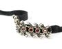 Empirový starožitný náhrdelník s hlavičkami mouřenínů, černý a bílý smalt, almandiny, stříbro ryzosti 835/1000 a 925/1000. Celková hmotnosti 14,95 g. Délka 34 cm, celkový rozměr článků s mouřenínky cca 6,5 x 2,5 cm, přišito na černé sametce. Osvědčení Puncovního úřadu