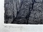 Grafický list na papíře o velikosti štočku 36,5 x 27 cm, výřezu pasparty 44 x 29,5 a celkovém rozměru 57 x 44 cm. Signováno vpravo dole, vlevo dole autorský přípis “Am Spinnrad”. Rám, pasparta,sklo.