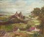 Olej na kartonu 48 cm x 56 cm. Signováno F. Váň ?. Pohled na zříceninu hradu Trosky v českorajské krajině. V popředí košatý strom a dvě venkovská stavení v podhradí. Ve zlaceném rámu s reliéfními ornamenty a vnitřní zdobnou stříbrnou lištou. Československo 1920 - 1940. Celkový rozměr s rámem 56 cm x 63 cm.