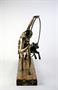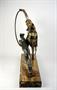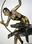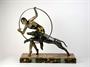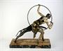 art deco figura artistky/tanečnice trénující psa, patinovaný kov, kamenný podstavec (mramor a onyx), Francie, kolem roku 1935; výška 39 cm, šířka 39 cm