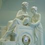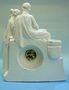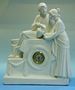 Keramické figurální hodiny v klasicistním stylu.Značeno AMB 151 , keramika Bechyně,stroj Kienzle, tikají, ale malá ručka je volná, rovněž jsou hodiny volné v uložení.Výška 42cm
