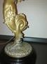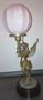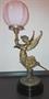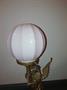 Figurální lampička. Podstavec černě mořené dřevo tělo mosaz, koule sklo s lehce růžovým nádechem. Vše původní. Elektro odkontrolováno. Plně funkční. Rozměr : výška 50cm, průměr koule 14cm.