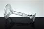 Přibližně 100 let starý figurální svícen z čirého částečně matovaného ručně lisovaného skla s motivem světce - Svatého Šebestiána, který je uctívám jako patron vojáků, střelců, hrnčířů a obchodníků s kovovým zbožím. Pravděpodobně provedla některá z Jizerskohorských krystalerií do souboru skla s motivy svatých a náboženskou tématikou. Dobrý stav, rozměr v. 24cm, prům. 12,5cm