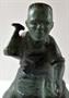 Patinovaný cín nebo litina. Soška ševce sedícího na stoličce, s kladívkem v ruce, přidržující vysokou botu mezi nohama. Podstavec ve tvaru erbu. Neznačeno. Evropa, 19. století ? Výška 11 cm, šířka 7,5 cm.