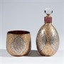 Kolem r. 1895, sklárna Moser, Karlovy Vary, značeno zespodu malovaným číslem, rubínové sklo bohatě dekorované zlatem a stříbrem (nebo platinou) a bílou barvou, výška 12 a 5,5 cm. Ref.: Potvrzeno archivem sklárny Moser, Karlovy Vary.