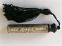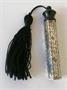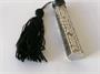 Skleněný křišťálový flakonek ve stříbrném pouzdře, stříbro 800/1000, váha pouzdra 11 g, celková délka 8,5 cm.