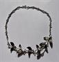 Puncovaný, stříbrný náhrdelník s florálním motivem s autorskou značkou ST v kruhu, stříbro o ryzosti 800, celková délka cca 42 cm, celková hmotnost 20,35 g.