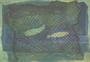 Ryby v síti, olej na plátně, koláž se síťovinou. Rozměr obrazu 49 x 69 cm. Signováno vpravo "KONČEL" (viz. foto). Celkový rozmě s rámem 53 x 72 cm. František Končel, nar. 1918.