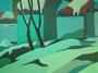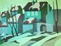 František Stolař - Tání VI., Malba olejem na sololitové desce s námětem zasněžených domů. Rozměry 73 x 60 cm s rámem, bez rámu 69 x 55.