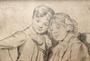 Kresba uhlem na papíře o velikosti 29 x 23 cm ve výřezu pasparty, rámováno v paspartě pod sklem, signováno monogramem vpravo dole,