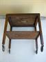 Starý dřevěný stolek na 4 kovových kolečkách s gumou, zespodu horní desky původní papírová nálepka FISCHEL továrny na nábytek D.G. Fischel & Söhne, Mimoň / Niemes (zal. 1870), zřídka viděný model z první poloviny 20. století. Rozměry 55 x 39,5 x 58 cm, dobrý původní stav bez poškození a zásahů, kolečka funkční, dýha horní desky s fleky a drobnými prasklinkami (viz poslední foto), na okrajích drobné defekty, běžné známky stáří a používání. (696)