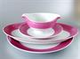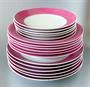 Stará art deco jídelní souprava pro 6 osob, z barevně dekorovaného porcelánu, celkem 25 kusů, produkce porcelánky Bohemia v Nové Roli, kolem r. 1930, značka výrobce na všech dílech zespodu (viz foto). Sestává z: polévková teryna (průměr 23,5 cm), omáčník (p. 19,5 cm), oválný servírovací talíř (32,5 x 20 cm), kulatý servírovací talíř (p. 29 cm), čtverhranná miska (18 x 18 cm), solnička (13 x 6 cm), mísa (p. 25,5 cm), 6 plochých talířů (p. 25 cm), 6 hlubokých talířů (p. 24 cm), 6 talířků na předkrm (p. 19 cm). Celkově velmi dobrý stav, patrně nebylo nikdy používáno, drobný oťuk na okraji jednoho plochého talíře.