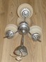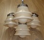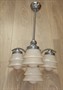 Funkcionalistický či chcete-li art deco,chromovaný lustr tříramenný a se středovým světlem,se zvonkovými,krémovými širmy,zachovalý,původní elektrifikace,výška cca 60 cm.