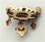 Tombak, přírodní ručně broušené české granáty, leštěný přírodní almandin a říční perličky. Období a styl: biedermeier. Celková hmotnost 22,70 g. Větší biedermeierová brož z tombaku s centrální muglí leštěného přírodního almandinu obklopeného říčními perličkami. Tělo brože se třemi ověsky tvořené pravými českými ručně broušenými granáty a říčními perličkami stylizovanými do podoby okvětních lístků. Čechy 1840 - 1870. Rozměr brože: 55 mm x 60 mm.