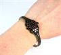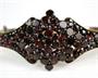 Náramek z tombaku osázen českými granáty, Celková hmotnost: 7,88 g, vnitřní průměr: 5,9 cm. Náramek opatřen pojistným řetízkem. 19. století.
