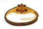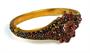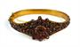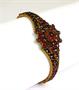 Náramek s růžicí z tombaku zdobený českými granáty z poloviny 19. století. Šperk je v dobrém stavu, nepoškozený. Obvod náramku je 18 cm.