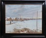 Olej na kartonu 44 cm x 58 cm. Signováno vlevo dole. Autor: Hilar Václavek (1884-1951) český malíř, krajinář, ilustrátor a grafik bojující za první světové války v legiích. Jeho pobyt na Sibiři v Tobolské gubernii ho inspiroval k vytvoření obrazu. Kolonie dřevěných domků s cestou lemovanou sněhovými závějemi. Originální černý leštěný rám se zlatou tenkou vnitřní lištou. Sibiř 1915 - 1918. Celkový rozměr s rámem 63 cm x 79 cm.