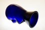 Designová skleněná plastika "HLAVA" z kobaltově modrého hutního skla foukaného do dřevěné formy. Masivní skleněná socha - objekt vespod broušený. Provedly sklárny v Novém Boru v 70-80tých letech. Dobrý stav, rozměr - v. 29 x 18 x 17cm