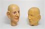 2 x dřevěná hlava pro větší loutky - marionety, jsou precizně vyřezávané v detailech a jedna z nich je polychromovaná. Usměvavý muži s holou hlavou a teatrálně velkým nosem a ušima. Práce odhadem z poloviny minulého století od scénografa, loutkáře a malíře - Jan BENDA (*1897 +1967), studoval u V. Brunner, F. Kysela a E. Dítě. Jeho tvorba je zastoupena v mnoha našich veřejných sbírkách. Dobrý stav, rozměr - v. 17cm a v. 15cm