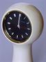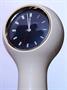 švýcarské stolní hodiny SECTICON na jeden monočlánek typu buřt, navrhl Angelo Mangiarotti, plast v barvě slonové kosti, ciferník černý, výška 24 cm, s původní krabicí, jako nové