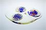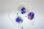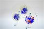 Neobvyklá masivní autorská plastika - objekt z hutního skla. Na čirém bločku jsou tři nálepy se zataveným pestrobarevným dekorem. Autorem návrhu je sklářský výtvarník, malíř a pedagog Josef Michal HOSPODKA (*1923 +1989), provedla sklárna Prácheň u Nového Boru po roce 1970. Dobrý stav, rozměr - š. 26 x 20 x 4cm, hmot. 1,7kg