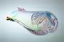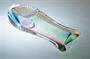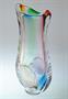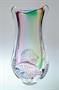 Masivní hutní váza z 60-70tých let s nálepy ve tvaru listů a v jádru čirého skla je zatavený barevný dekor ve spektru odstínů duhy. Autorské hutní sklo, které vytvořil ( dle pamětníka ) fenomenální huťmistr Josef ROZINEK ( *1911 +1992 ) na huti Hantych podnik Borské. Dobrý stav, rozměr - v. 23 x 11 x 8cm