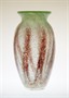 Velká a masivní váza z barevného hutního skla s krásně žíhaným zataveným dekorem. Váza ve stylu Art - Deco, umělecké sklo s obchodním názvem IKORA GLAS od německého designéra a sklářského výtvarníka - Karl WIEDMANN (*1905 +1992). V 30-40tých letech, provedla sklárna WMF (Württembergische Metallwarenfabrik) Geislingen Německo. Dobrý stav, rozměr - v. 25cm, prům. 13cm