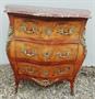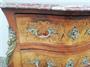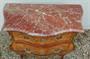 Intarzovaná komoda zdobená mosaznými aplikaci. Slušný bytový stav mramor bez poškození. Vše původní. Rozměr 88x37cm, výška 87cm