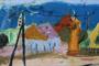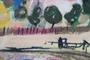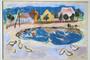 Ivana Vraná, Kachny u rybníka, barevné křídy na kartonu,