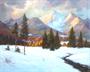 Olej na plátně 80 x 97 cm. Signováno vpravo dole. Pláně pokryté sněhovou pokrývkou s ozářenými vrcholy hor. Stříbrný široký rám zdobený reliéfním ornamentem v jeho horní části. Československo 1920 - 1940. Celkový rozměr s rámem 95 x 113 cm.