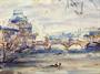 Kombinovaná technika na papíře, velikost ve výřezu pasparty 32 x 50 cm, celková míra 47 x 65 cm včetně pasparty a skla, signováno v pravo dole.