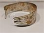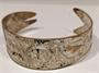 Signovaný náramek, z částečně stříbřeného obecného kovu, od významného maďarského šperkaře Jánose Percze. Náramek byl patrně zakoupen na výstavě maďarského užitého umění, která se konala v roce 1961 v Praze U Hybernů. Šířka náramku v nejširší části 2,7 cm.