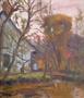 Olej na kartonu 49 x 66 cm. Signováno vpravo dole. Podzimní krajina s náhonem a lávkou v popředí, stavením, stromy a výhledem do krajiny. Světlý profilovaný rám se šedivou vnitřní širokou linkou a sklem, celkový rozměr 66,5 x 82,5 cm. Vzadu na kartonu razítko soudního znalce. Jaro Svoboda ( nar. 1879 ). Československo 1920 - 1930