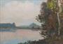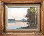 Olej na kartonu 25 cm x 35 cm. Autor: Jaromír Kunc (1900-1971). Signováno vpravo dole. Vzadu strojově psaný Ověřovací list s popisem obrazu a jeho názvem i jménem autora a malířovým vlastnoručním podpisem doplněný o výňatek z kulturní zprávy ze dne 25.3.1950 s popisem autora u příležitosti jeho výstavy k životnímu jubileu 50 let. Krajinomalba s rybníkem obklopeným břízou, olšemi a vodními travinami za polojasného letního dne. V originálním klenutém profilovaném patinovaném rámu s řezbovanými florálními ornamenty a sklem. Československo, kolem roku 1950. Celkový rozměr se sklem a rámem 38,5 cm x 48,5 cm.