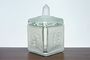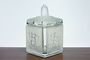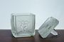 Luxusní dóza s motivem hrajících si Putti ( dětí andílků ) velmi jemný a plastický reliéf. Masivní ( především víko ) broušené a leštěné sklo v ART - DECO tvarosloví. Bravurní skleněná dóza pravděpodobně z Francie kolem roku 1930. Dobrý stav, rozměr v. 17 x 11 x 11cm