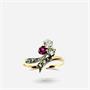 175211Jemný zlatý secesní prsten s rubínem a diamanty