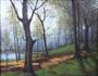 Olej na plátně 55 x 69 cm. Signováno vpravo dole s datací 1912. Travnatá mýtina s listnatými vzrostlými stromy. Na levé straně obrazu pohled na vodní plochu. Čechy rok 1912. Celkový rozměr s rámem 67 x 82 cm.
