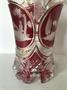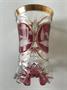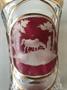 Sklenice na zoubkované noze, čiré sklo, lazurované a broušené, se zlatým okraje. V kartuších jezdecký motiv. Výška 15 cm, průměr 9,5 cm. Kol 1830.