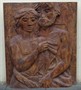 Rozměrný,závěsný,doudílný dřevořez,od ak.sochaře Jiřího Kleina (nar.14.10.1939 Slaný - 1989 Praha Strašnice),studia SPŠ sochařsko-kamenická v Hořicích a AVU Praha u prof.K.Hladíka,celkový rozměr 105x92 cm,na zadní straně původní,originální štítek s razítkem Českého fondu výtvarných umělců,jménem autora,názvem díla a původní cenou.