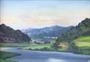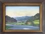 Tempera a kvaš na kartonu 22,5 x 30 cm. Signováno vlevo dole s názvem obrazu: U Zbečna a vročením 1946. Pohled do krajiny v okolí Zbečna s meandrem řeky Berounky, stavením a kopcovitou krajinu v pozadí. Originální patinovaný stříbrný rám se sklem. Československo rok 1946. Celkový rozměr s rámem 30 x 37 cm.
