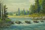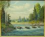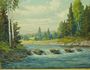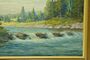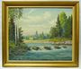 Krajinomalba - kamenný jez na říčce malebný motiv z plenéru, malíř mistrně zachycuje tekoucí vodu přez kameny v lesnaté krajině a letní oblohu, moravský autor - Jaroslav KADLEC ( *1928 +1975 ) převážně krajinář malíř Novojičínska a Beskyd, který barvou štětcem mistrně přednáší poetickou náladu a atmosféru krajiny. Olej na desce, sign. p.d. rámováno v dobrém stavu. Rozměr rámu - 70 x 60cm, rozměr díla - 59 x 49cm