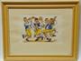 Veselý motiv chasníků v krojích, podle hudebních nástrojů snad z Plzeňska, barevná litografie od malíře, grafika a ilustrátora - Otakar ŠTEMBERA ( *1914 +1999 ), studium u O. Blažíčka, pracoval jako divadelní a filmový výtvarník, nositel titulu Zasloužilý umělec, působení Praha a Kyšice ( Plzeň-město ). Dílo z roku 1987 v původním rámu, paspartováno pod sklem, sign. a dat. p.d. Na zadní straně věnování psané autorem. Celkový rozměr 49 x 40cm. Dobrý stav, rozměr díla 28 x 19cm