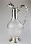 karafa na víno, čiré broušené sklo se stříbrnou montáží, Ag btto 734g/925/1000, stříbro zdobené stužkovým dekorem, Francie, kolem r. 1890, dobové francouzské puncy, pozdější český punc; výška 27 cm, průměr 11 cm