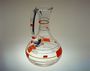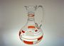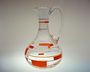 Váza - karafa s uchem z čirého skla s malovaným kubistickým ornamentem. Dekor je na celé ploše včetně ucha a je malovaný vypalovaným smaltem. Provedly sklárny v severních Čechách po roce 1930, perfektní stav bez poškození, rozměr v. 26cm, prům. 16cm