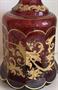 Karafa z rubínového skla malovaná zlacením, Výška 21 cm,stará více jak sto let z období Biedermeieru. je dekorovaná zlaceným vypalovaným smaltem s ornamentem květů. ze skláren v severních Čechách kolem roku 1850. , vyborný stav,