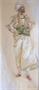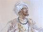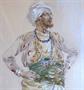 Akvarel, kvaš a tužka na kartonu 65 x 22 cm. Signováno vpravo dole s datací 1908. V secesním orientalizujícím stylu. Postava stojícího muže s vousy a bílým turbanem na hlavě, v cizokrajném zdobném oblečení. Stříbrný rámeček se sklem. Čechy rok 1908. Celkový rozměr s rámem 68 x 25 cm.