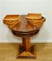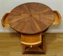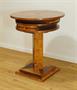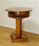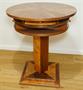 Stylový karetní a hrací stolek z počátku minulého století z bohatě dýhovaného dřeva stojící na jedné masivní noze. Zajímavě řešená horní deska se stupňovitým uložením odkládacích ploch i pro dva a dva šuplíčky na karty a společenské hry. Méně vídané luxusní a dekorativní provedení a zároveň praktický doplněk stylového interieru. Restaurovaný v perfektním stavu s povrchovou úpravou kvalitním polyuretanovým lakem ve středním lesku ( oproti šelaku je odolný a vhodný na každodenní používání ). Rozměr v. 71cm, prům. 61cm